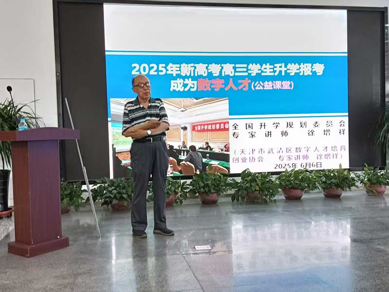 2025年6月23日下午,由“天津市武清区数字人才培育创业协会”主办,由数字人才职业升学规划专家徐增祥老师主讲,《数字人才就业前程似锦——2025年新高考高三学生升学报考成为数字人才》公益课,在天津市武清区京津产业新城人力社保综合服务厅(国际企业社区D1座1楼),成功举行,收获满满(见图片)。